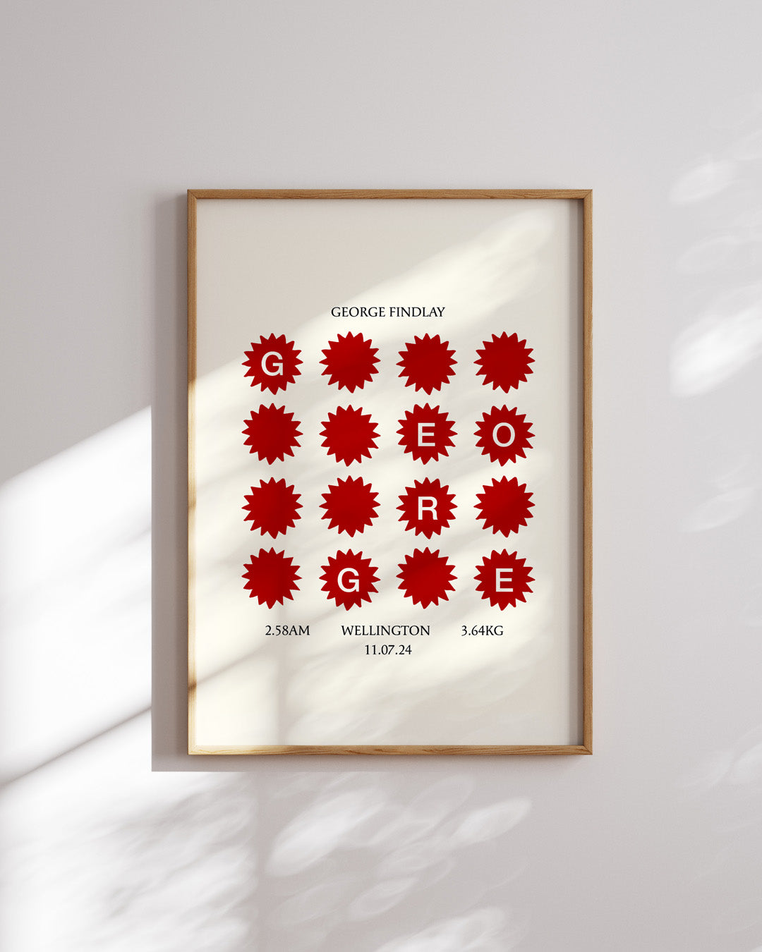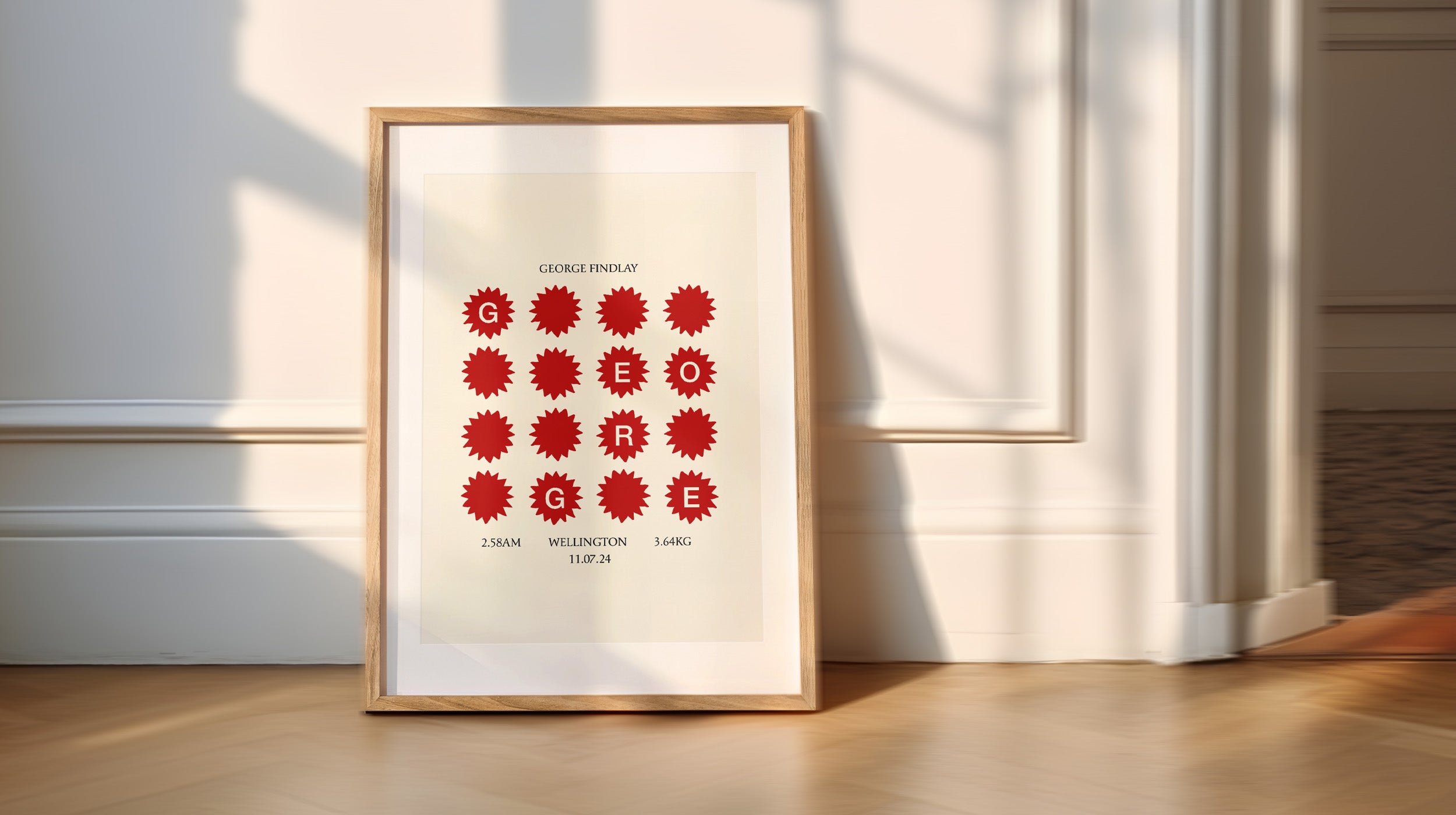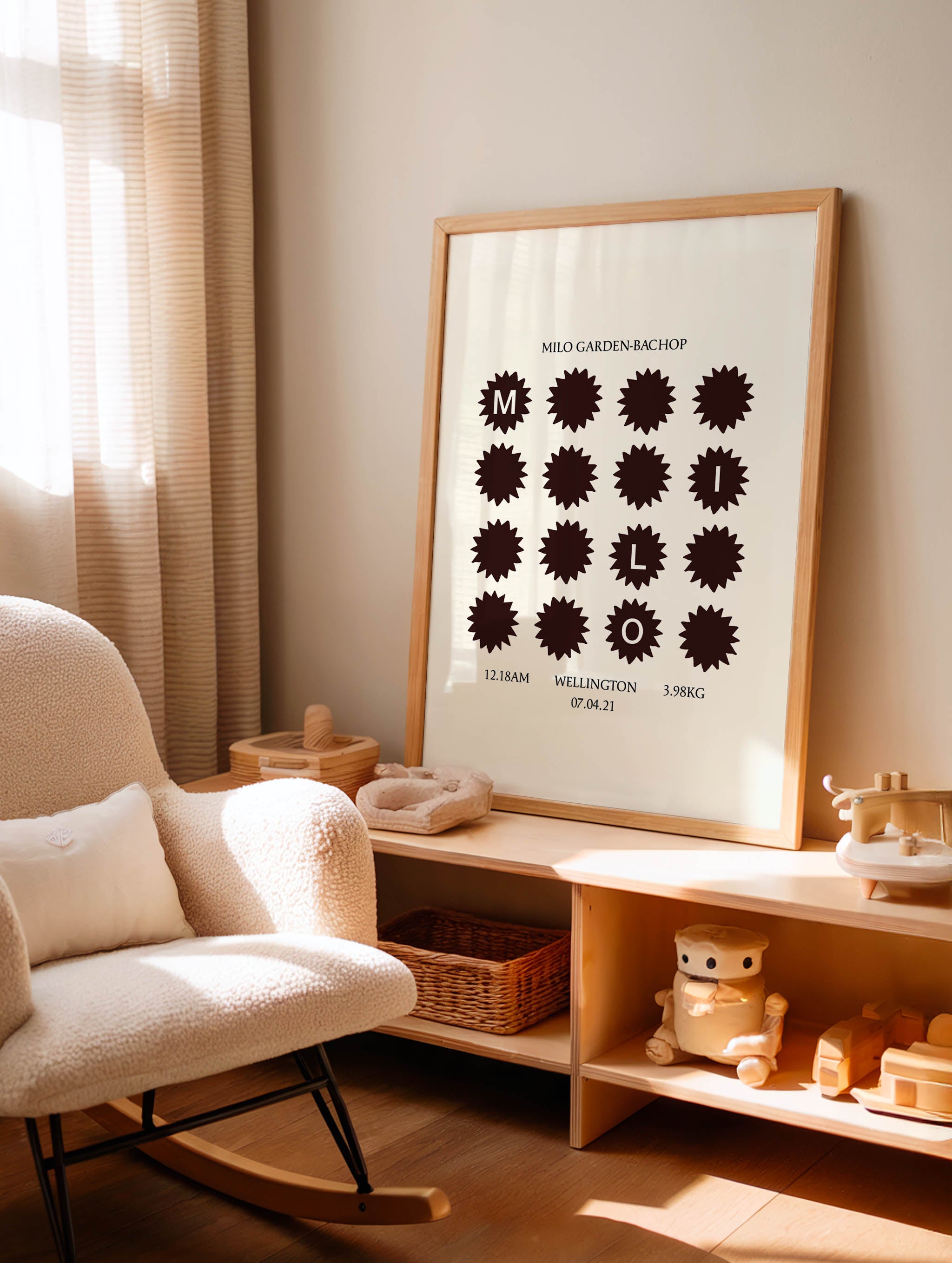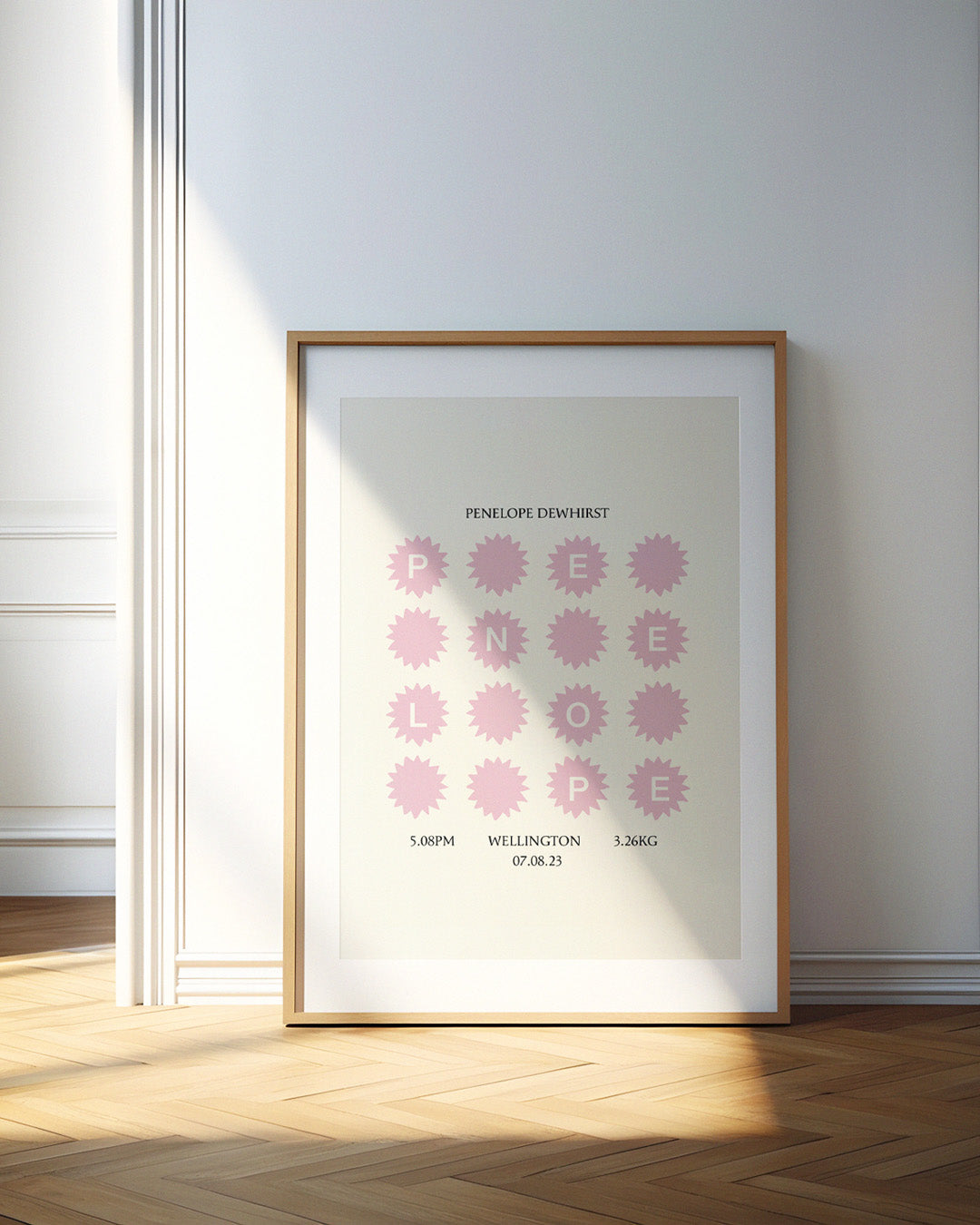 Each artwork includes all the special details you never want to forget: your baby's name, birth date, time, weight and place of birth - designed in a clean, minimal layout.