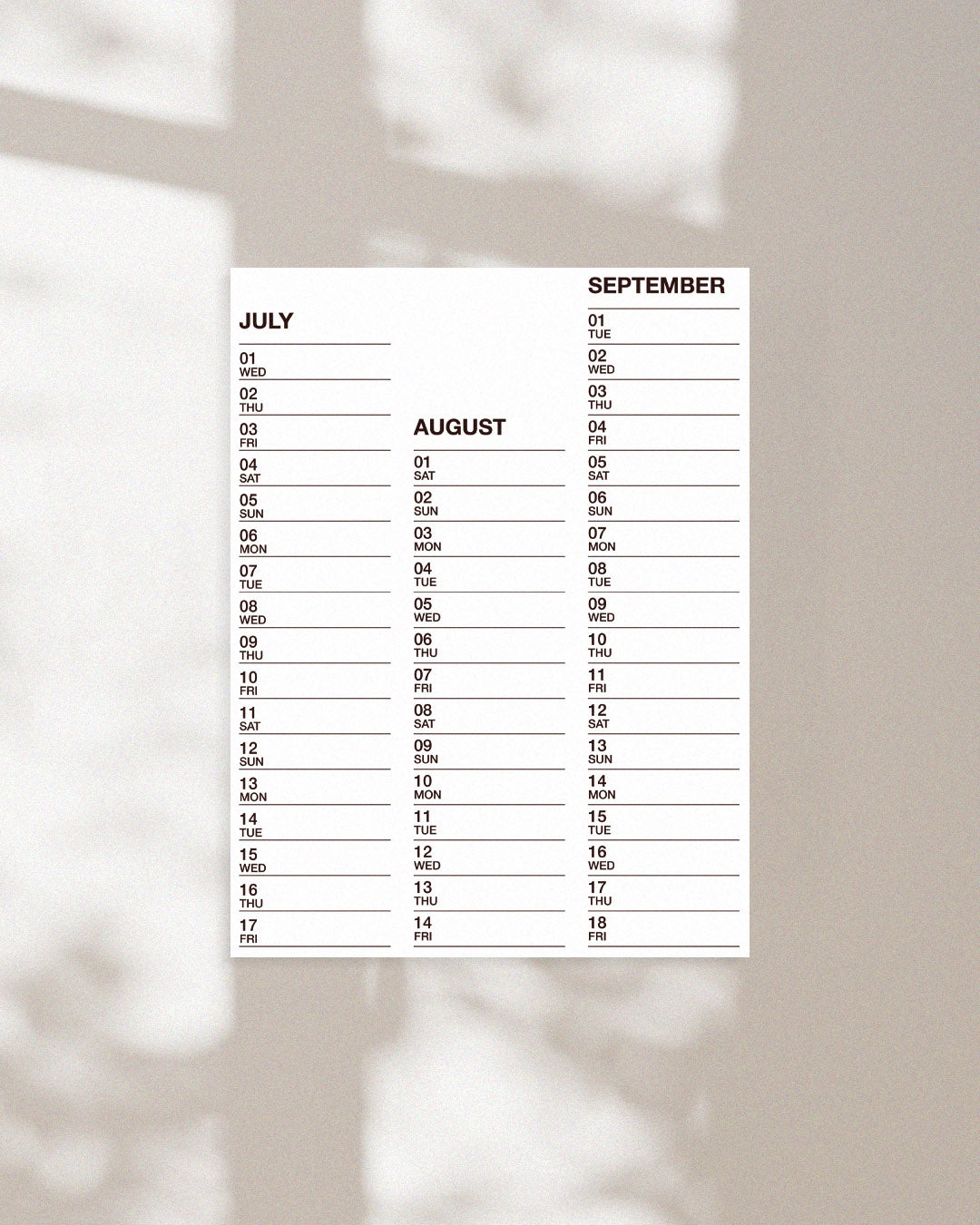 Why Digital? Printing and posting a calendar this size would push the cost well over $60. A digital download makes more sense for now. You can visit your local print shop and print it yourself. It’s more flexible and can double as a reason to get out of the house.